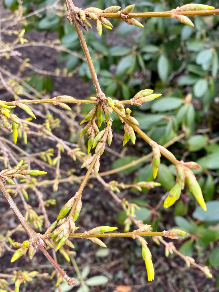 Today my intention is discover. What a sweet, Spring surprise to discover my Forsythia bush in full bud. I can’t wait to show more of my little world shedding its winter coat.