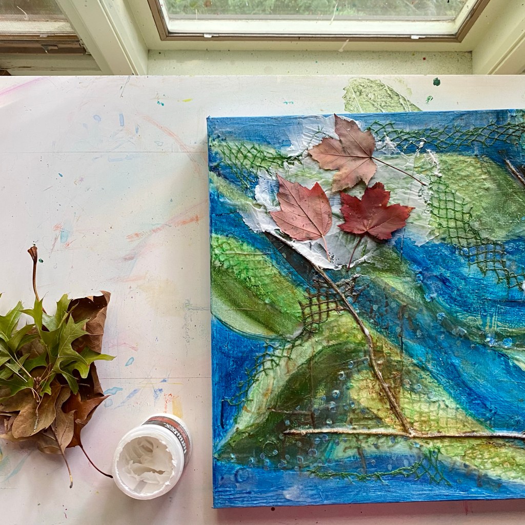 In My Studio…what inspires me today? … working with new techniques, staying with a color palette, being patient while it develops. Standard