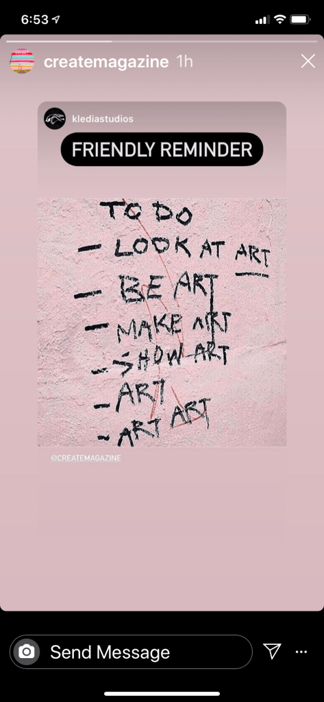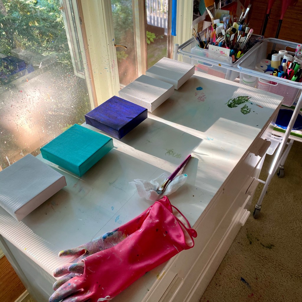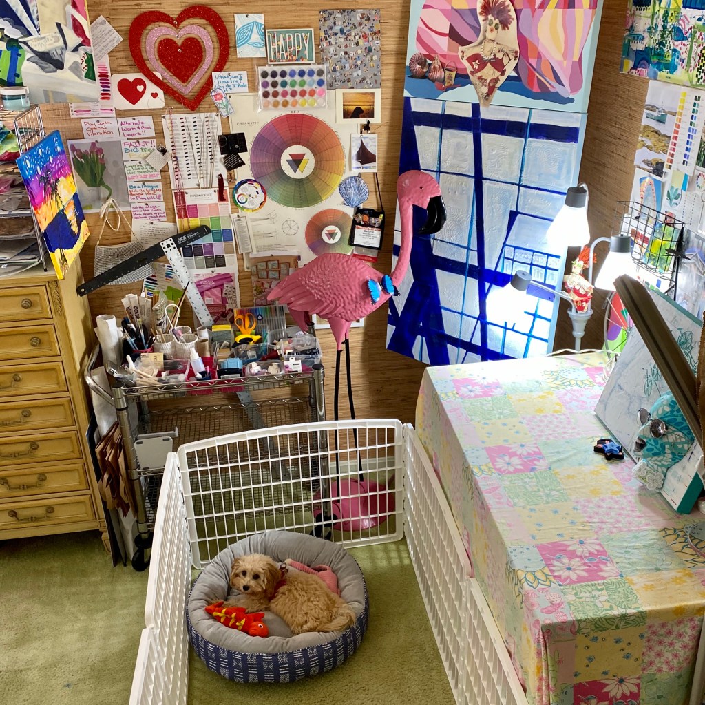 I’m great at the thinking! I think art all day. I start paintings, finish paintings – all I my mind. I also talk about art, I can talk a blue streak about an idea. It’s the doing where I get stopped. What inspires me today is doing. Wet paint doing!